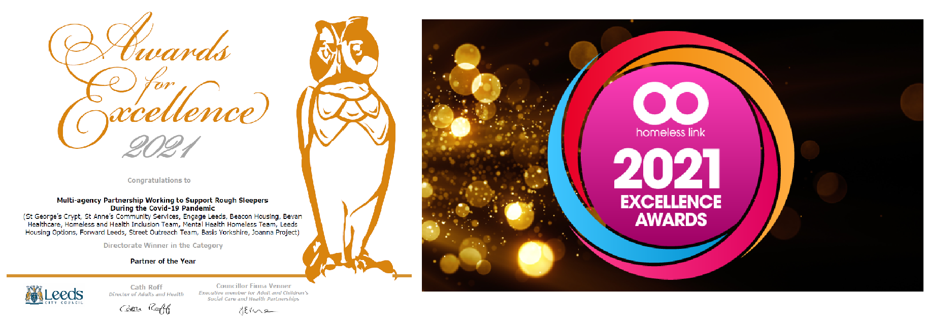 Towards the end of the year we were over the moon to have received two awards: The Homeless Link Excellence Award (People First) and the ‘Award for Excellence’ alongside our partners across Leeds for our multi-agency partner working with street outreach work.